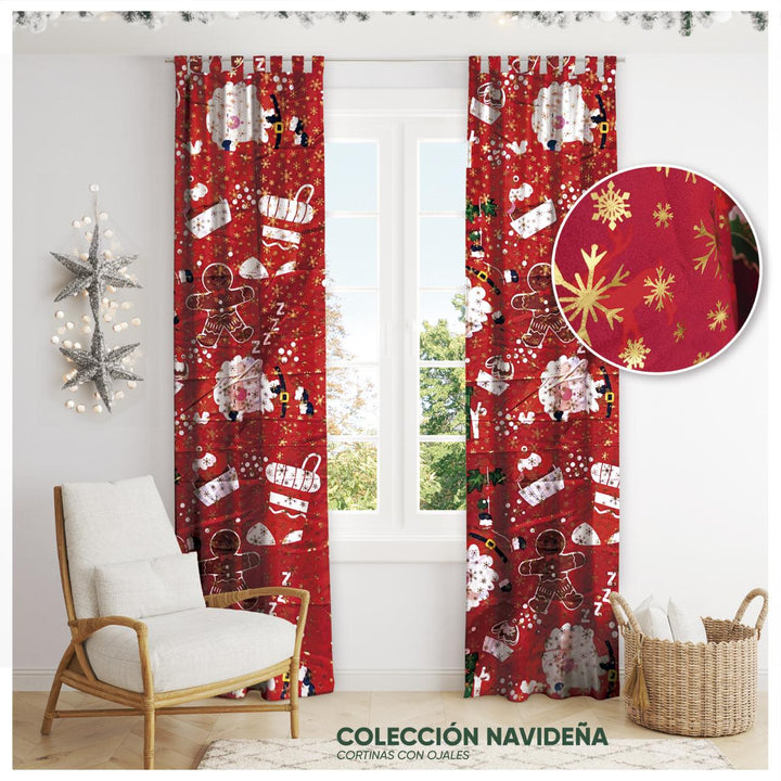 Ideal para complementar tu decoración o ajustar el espacio de tus ventanas, nuestra cortina navideña de una sola ala aporta calidez y estilo festivo.